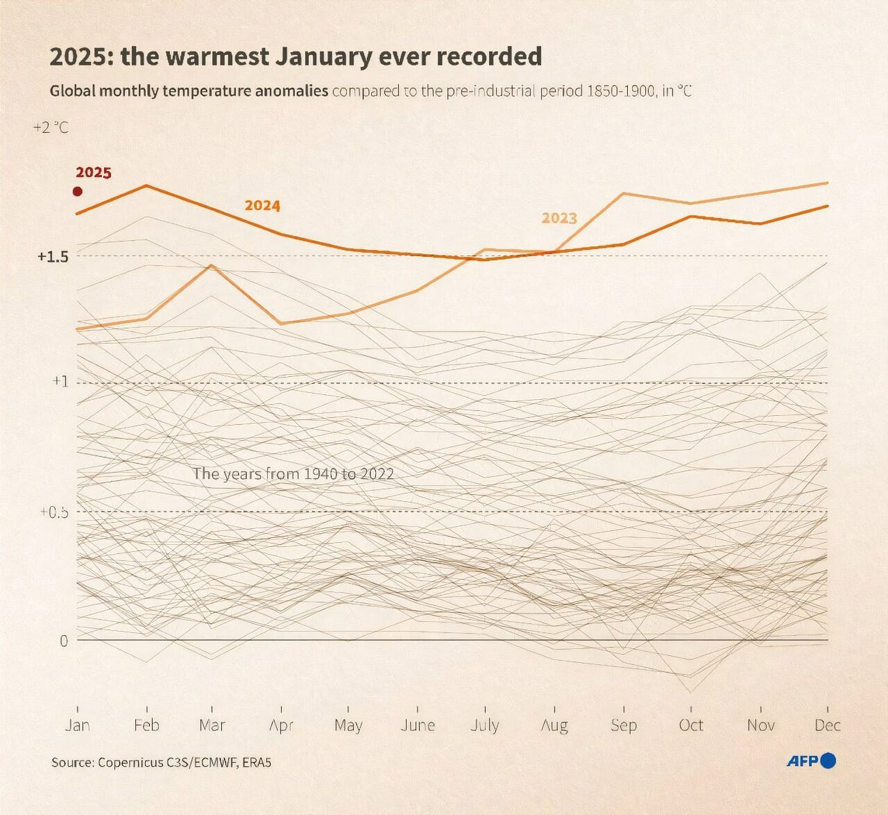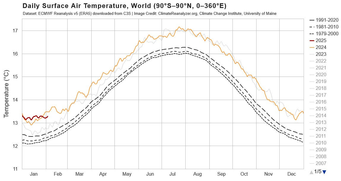 Instead, EVERY DAY in January 2025 has been +1.7°C over baseline.