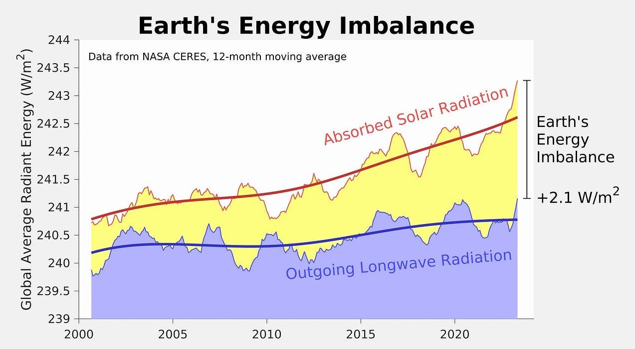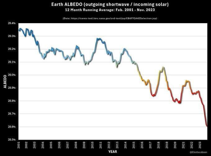 The Earth has become “less reflective” since 1997. This “dimming” accelerated around 2014 and got a LOT worse since 2021.
